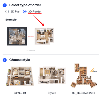 2. When you proceed with Order Plan > the system will offer to select the type, either 2D or 3D floor plan: