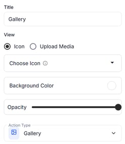Enter a title, choose the icon, background colour and opacity if needed and select the Gallery action type: