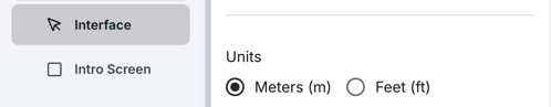 The Units settings allow you to choose how measurements are displayed in the Navigation Tool, both in Web and AR modes. You can toggle between meters and feet, depending on your preference or the measurement system commonly used in your region.