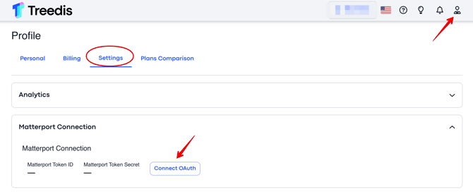 - Open your Treedis Profile > Settings > Matterport Connection.