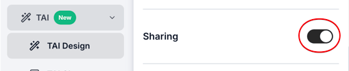 In addition to saving your design sessions, the TAI feature also allows you to share them with others. To enable sharing, simply toggle the Sharing switch on within TAI admin panel - no additional configuration is required.