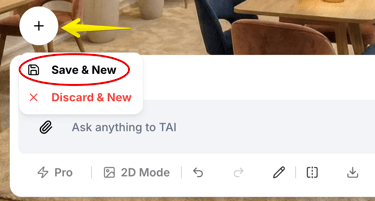 To save your AI edits, click the + button and select Save & New. During the saving process, you will be asked a one-time verification of your email address. This verification allows the system to associate a unique code with your saved projects.