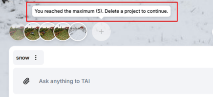 A maximum of 5 projects can be saved per space. When this limit is reached, new projects will not be saved unless an existing project is deleted.