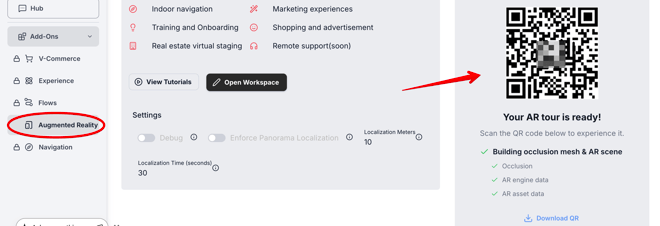 3. Once the AR conversion is complete and the QR code is available in the Augmented Reality section (usually takes up to 24 hours), simply scan the QR code to open the tour in the Safari browser. That’s it.