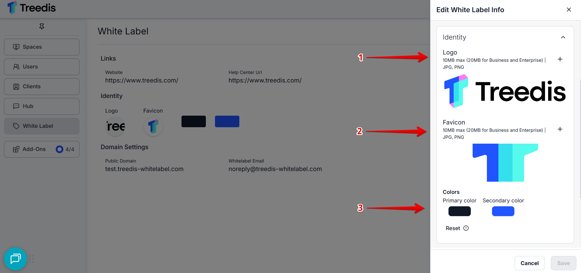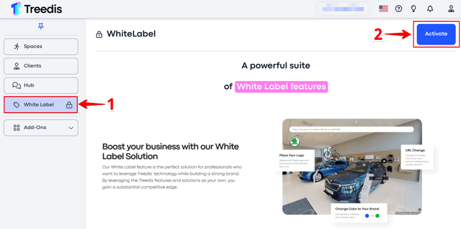 White Label (WL) solution provides the capability to entirely eliminate any signs of Treedis within your account and tours. It provides you with an opportunity to replace the Treedis logo, customize the domain address (URL), and select your preferred color scheme, thereby enabling you to present the tour as your own, allowing for a seamless pitch to your clients.