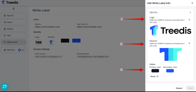 - Add your Logo (1) (to replace the Treedis logo)
